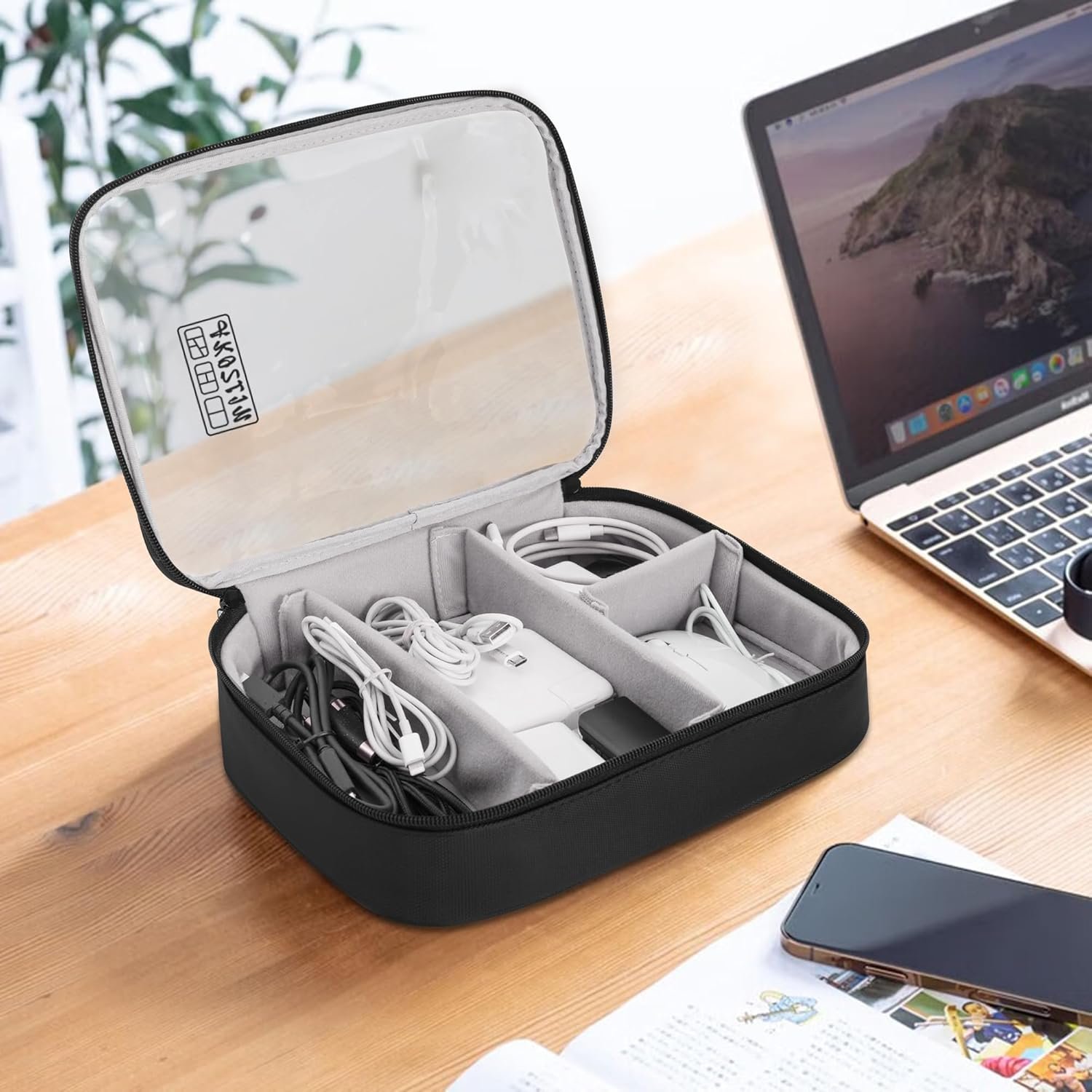With the dividing strip,Super Materials.You could be free to separate the storage space with the dividers, to fit many kinds of electronic accessories and cables or chargers.Waterproof Nylon Material:Durable and Water-resistant Nylon and clear plastic, Sleek looking, Lightweight and sturdy.Well-padded semi flexible covers offer excellent protection for your accessories; 2 zipper opening for easy and immediate access to your all your electronics accessories