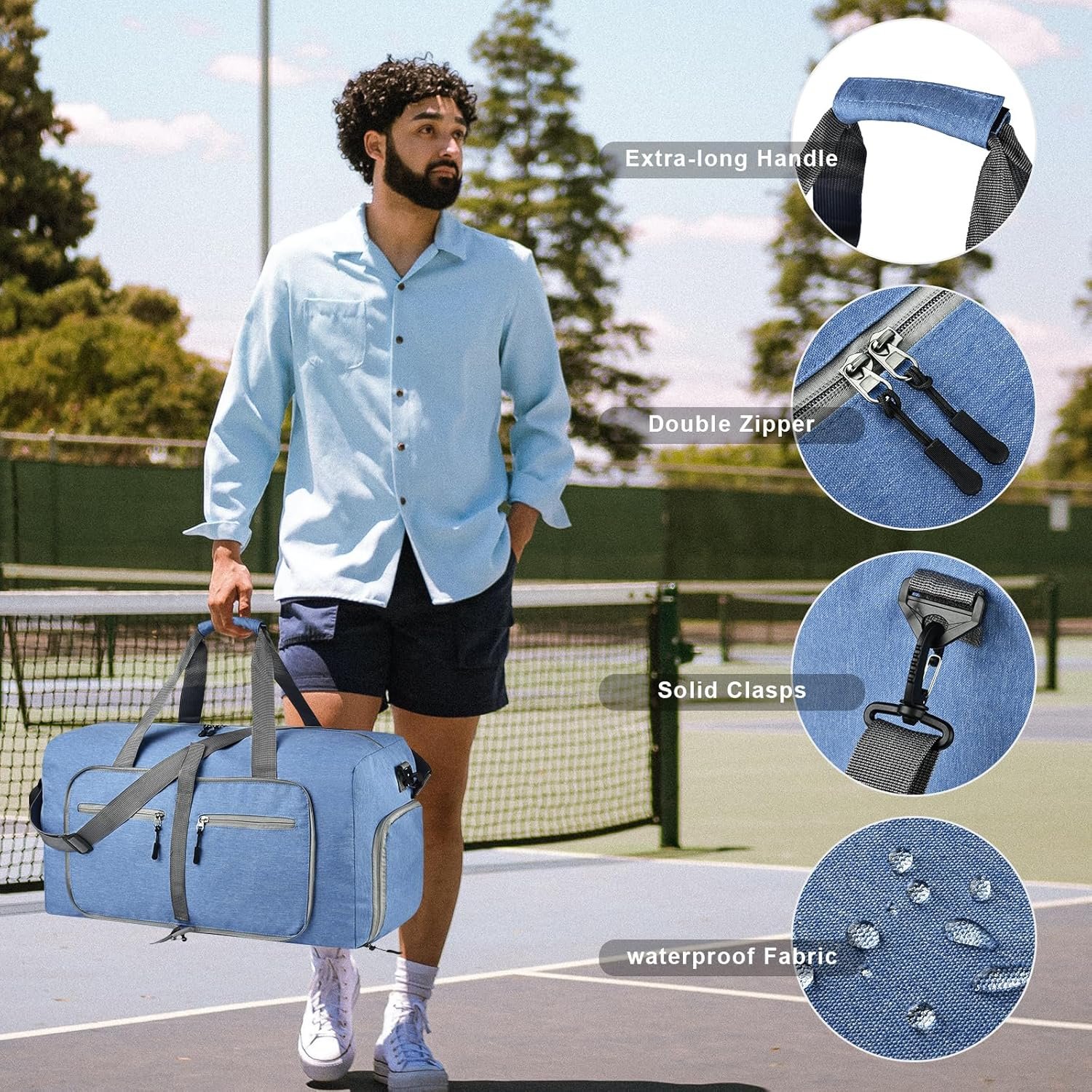 Dimayar 40L Travel Duffle Bag for Men Women – Foldable Duffel Bag with Shoes Compartment – Overnight Bags Waterproof & Tear Resistant(Blue)