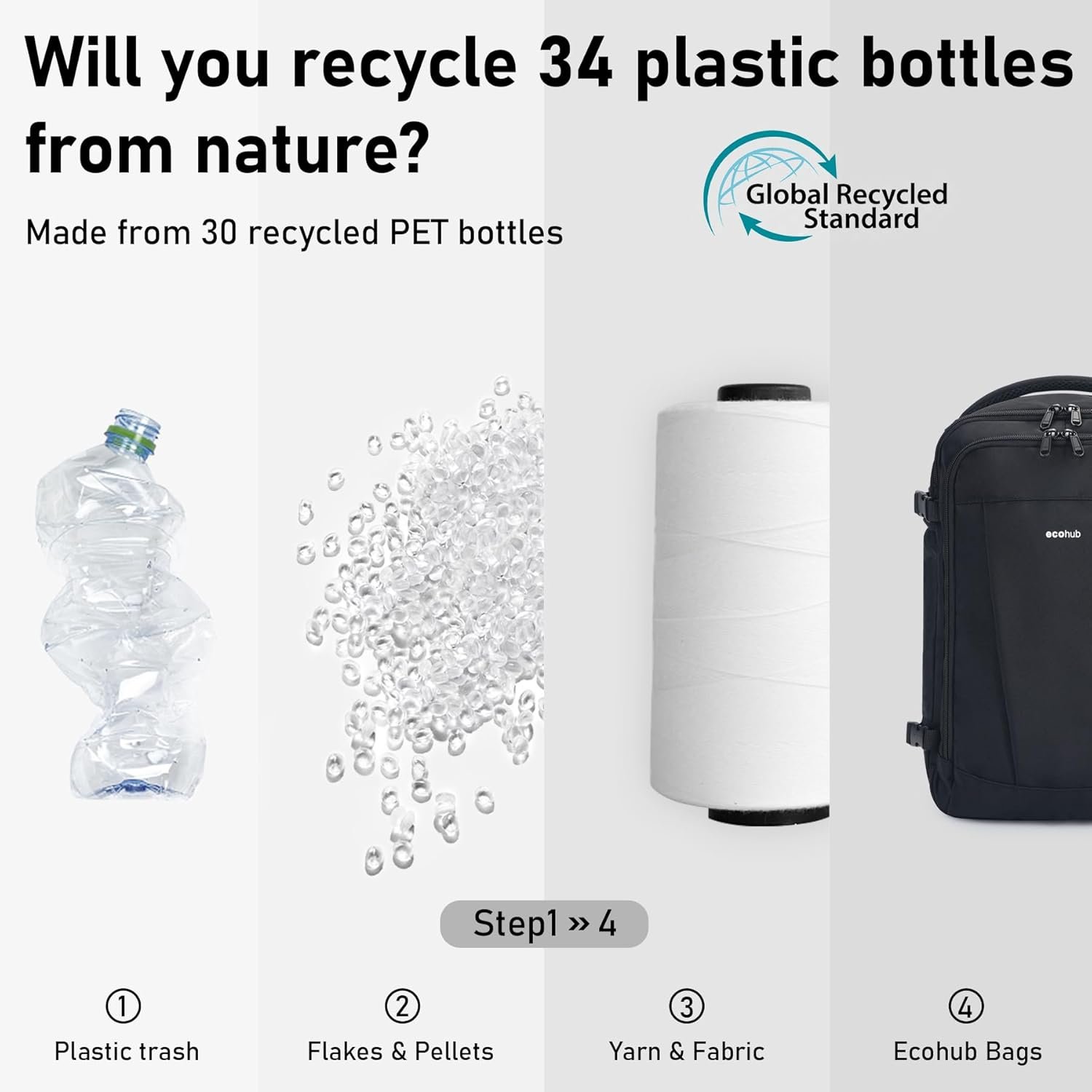 【SUSTAINABLE & GUARANTEE】: Our carry on bag is made from at least 50% recycled materials, with fabric and lining crafted from 34 recycled PET plastic bottles. The water-resistant, lightweight fabric, combined with heavy-duty SBS zippers and reinforced ripstop stitching, ensure durability for any adventure. If you have any concerns, reach out through your order. (Patent Pending)
