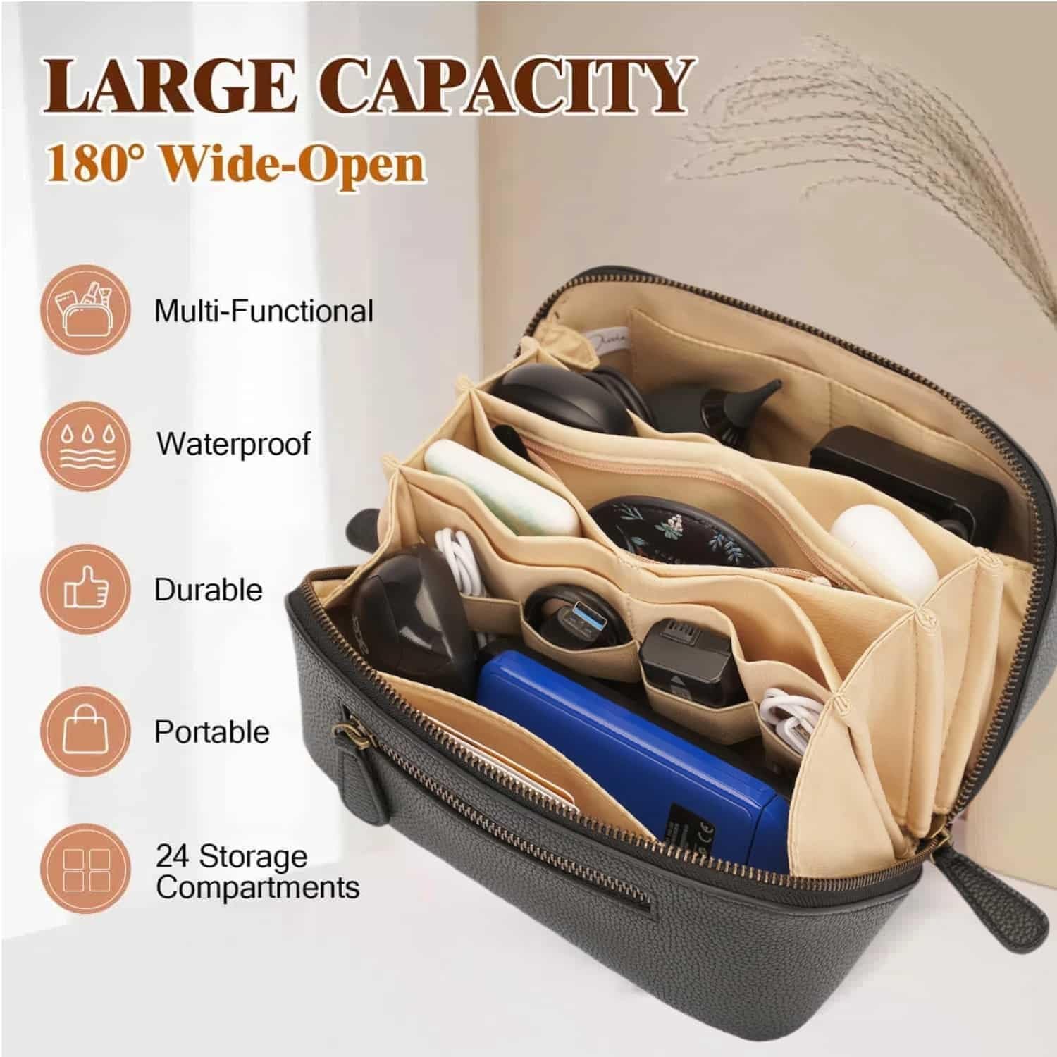 Premium Quality & Stylish Design: Crafted from high-quality waterproof PU leather, this electronics organizer travel case offers a sleek, modern look with a soft, comfortable touch. The durable material protects your accessories from scratches, ensuring long-lasting use. Its elegant textured finish adds a touch of sophistication, making it the perfect travel or daily companion for work, business trips, and vacations