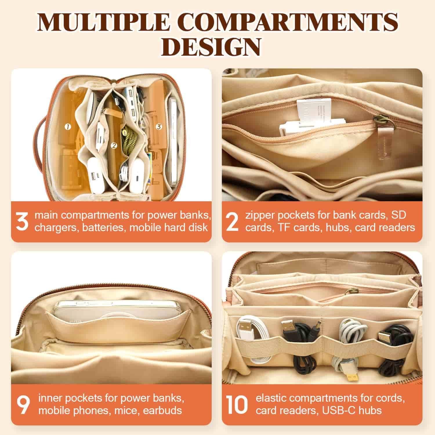 Large Capacity & Efficient Organization: Designed with 10 elastic straps, multiple compartments, and 2 zippered pockets, this travel electronics organizer provides ample space to neatly store and secure your USB cables, phone chargers, earbuds, cameras, SD cards, hard drives, power banks, and more. Keep all your essentials well-organized and easily accessible