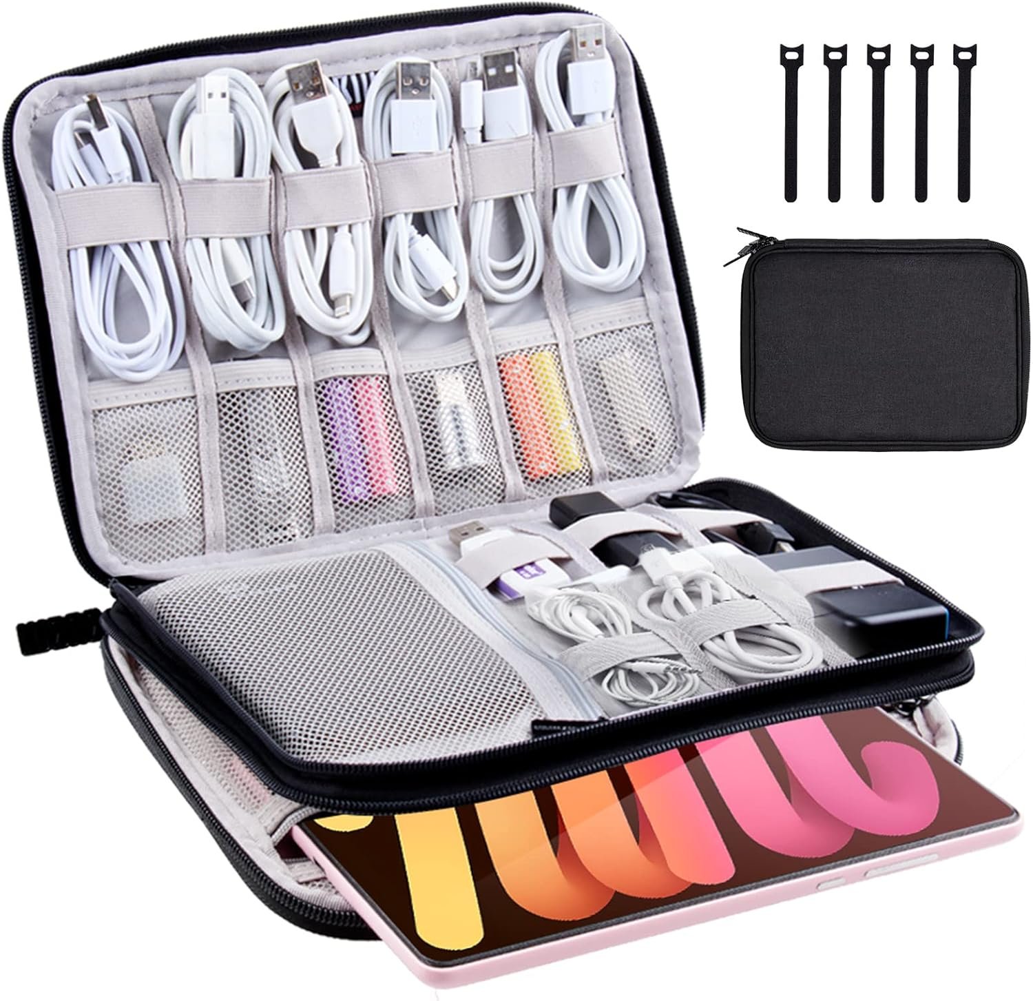 LARGE CAPACITY & ACCESSORIES – The tech organizer travel case is 9.8 x 6.9 x 1 inches, with an internal flat measurement of 9.3 x 6.3 inches, and weighs 6.6 oz. Includes 5 REUSABLE CABLE TIES to keep your travel case tidy (Cords and accessories not included)