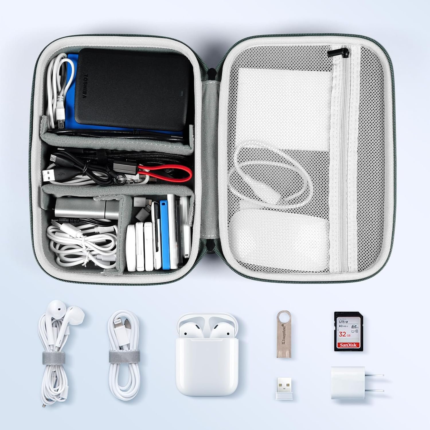 【High Quality Materials】Electronic accessories storage case is made of shockproof EVA hard shell and micro-fleece lining, which can effectively provide shockproof and crush resistance. And the external soft EVA material can provide waterproof function, better protecting your electronic accessories.