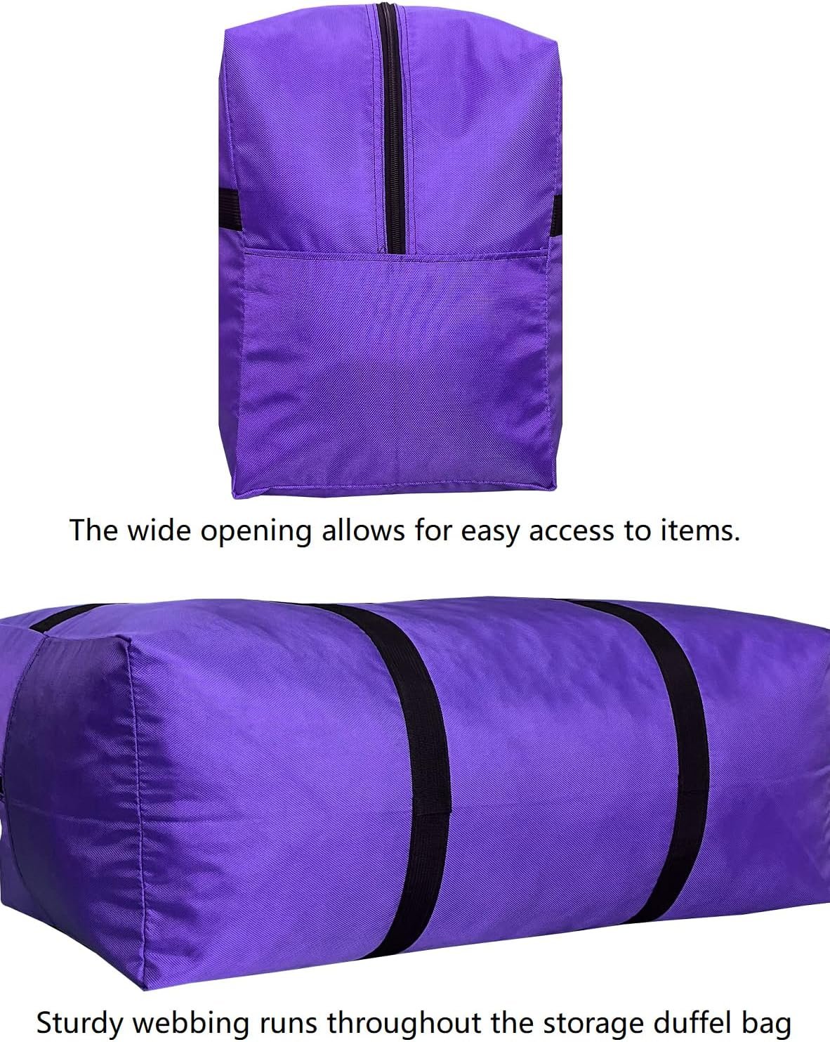 Multi-purpose and multi-scene: The portable large-capacity storage duffel bag can be folded into a flat shape to store clothes, blankets, duvets, large pillows, outdoor tables and chairs, outdoor cushion covers, camping tent bags, carpet bags, pool bags, inflatable kayaks, strollers and folding bicycles. It can also be used for moving, traveling, outdoor sports, outdoor picnics, luggage storage, storage of Christmas trees and holiday decorations.