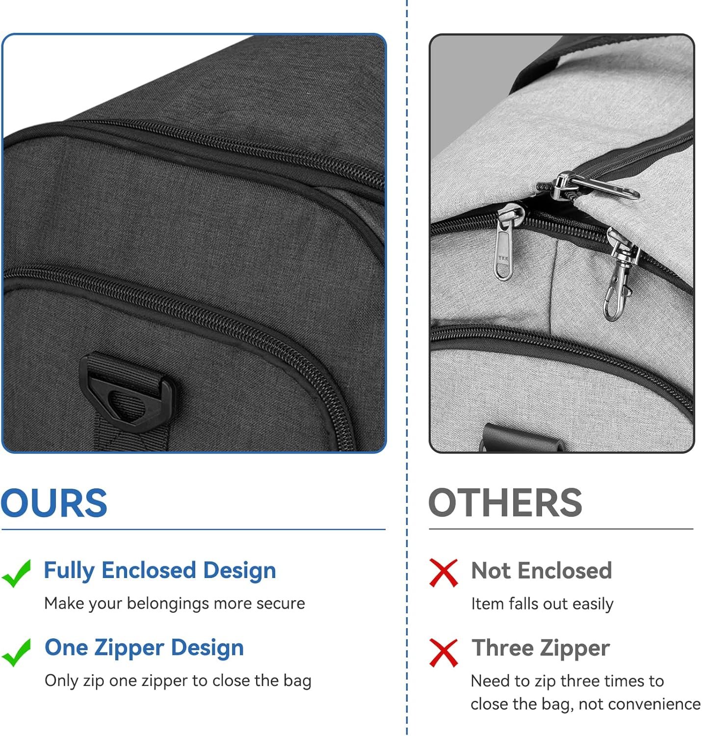 Humanized Design: Compared with others on the market, this garment travel bag uses one zipper design to ensure the bag is full-closed, not only more convenient for use but also keeps your items safer.