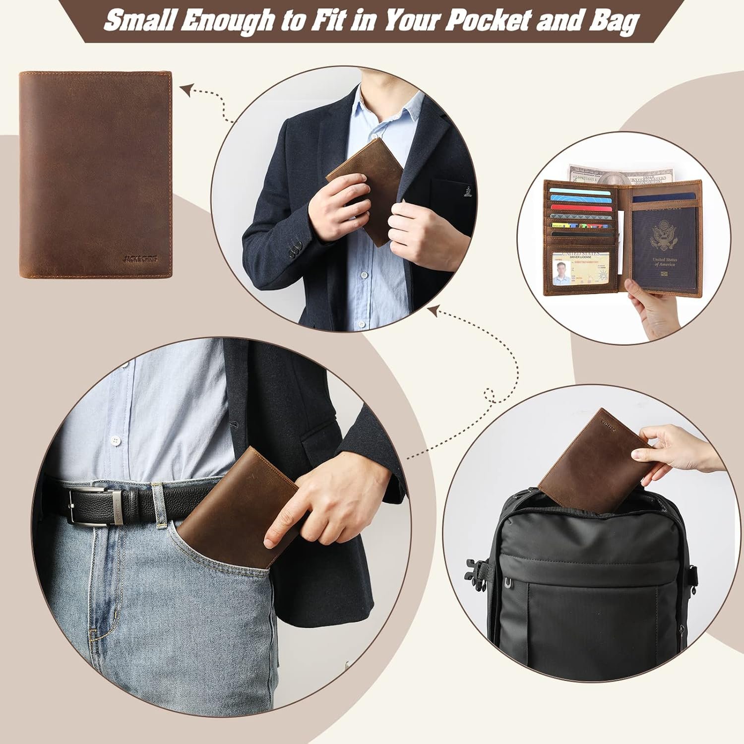 Leather Passport Holder: The passport holder is made of luxurious full-grain leather, which is both beautiful and reliable, suitable for long-term use.Soft and comfortable to grip in, waterproof and easy to clean.