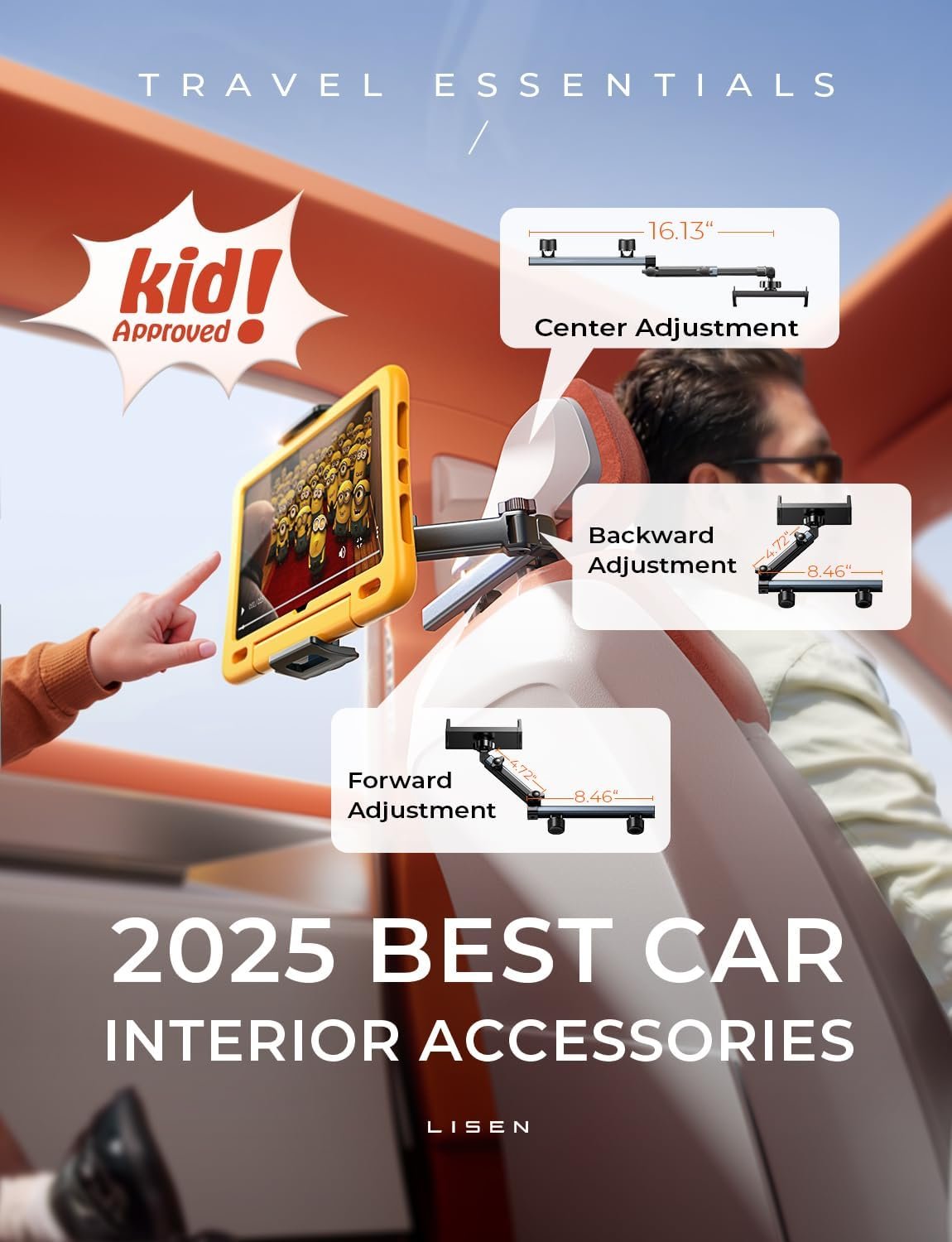 Tri-Axis Adjustability Upgraded Longer and More Solid: Perfect for: Busy moms who need a reliable, all-in-one solution for car travel with young kids road trip essentials. multi-purpose use (car seat, organizer, entertainment system) makes these features a smart investment for families on the go