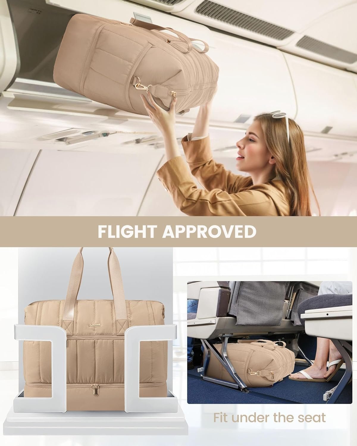 Airplane Carry on Bag Dimensions: The LOVEVOOK Women’s Travel Bag meets most international carry-on requirements. Can be stowed in the overhead compartment and under the seat as a personal item in flight. Integrated trolley cover slides over the rolling luggage handle. There is a zippered pocket on the back for your smartphone, ID or passport. The ideal overnight weekend boarding bag for business or personal travel bag.