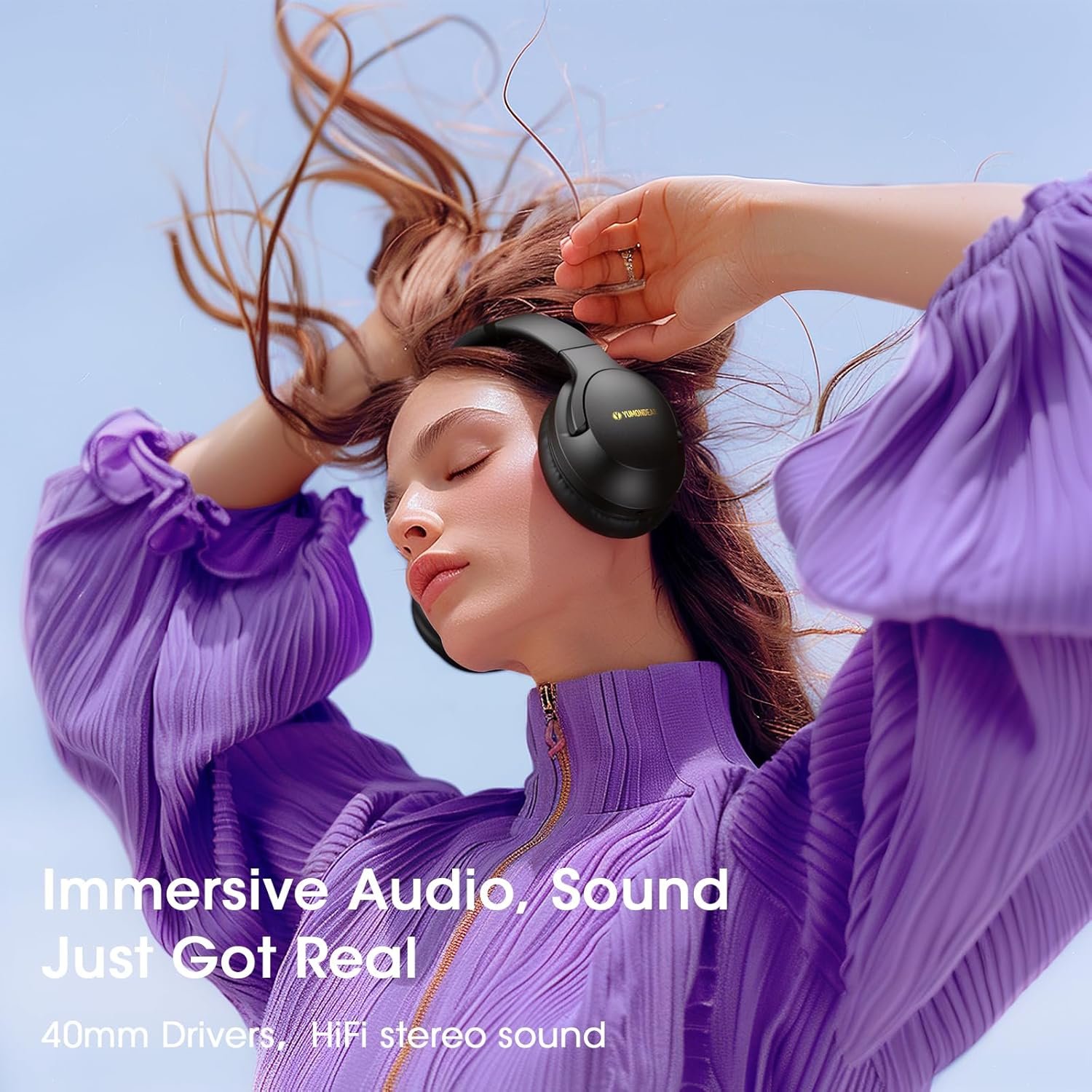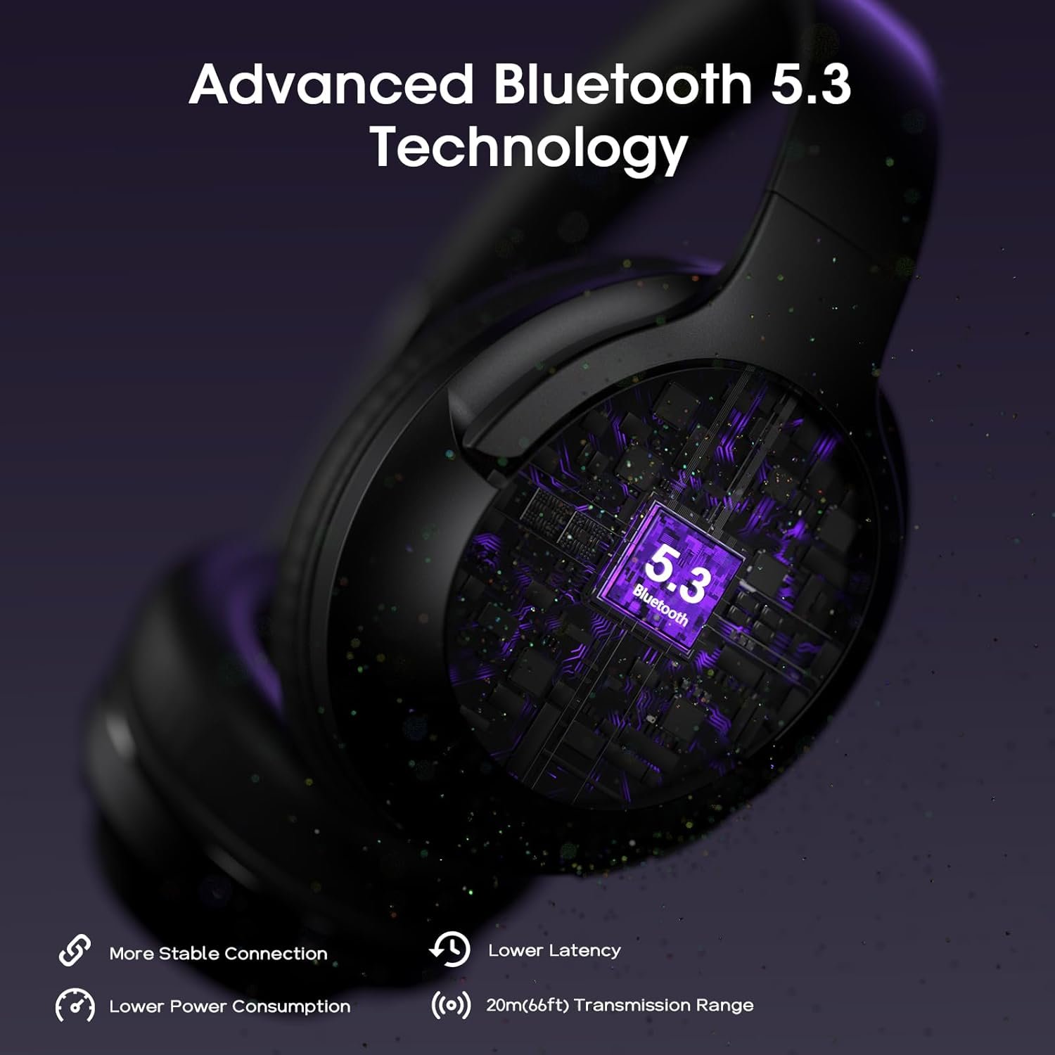 Bluetooth 5.3 & Built-in ENC Microphone: Bluetooth headphones over the ear carrying latest Bluetooth 5.3 chip, ensures an ultra fast and stable connection up to 66 feet (20 meters) and provide lower latency and better audio output. With the latest signal processing technology, built-in ENC microphone, supports ENC noise cancelling for calls, and is compatible with smartphones so you can talk clearly even on noisy streets