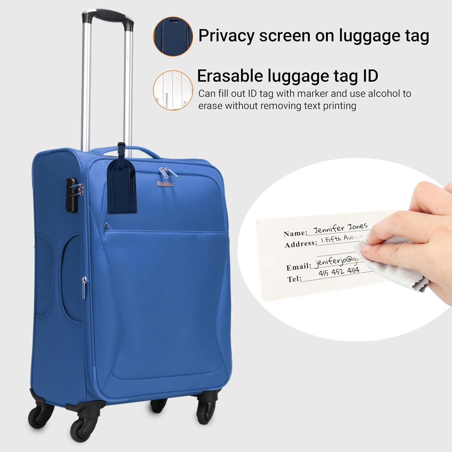 Matching Security Luggage Tag — Matching luggage tag with security window cover locks in place to ensure personal information is not easily readable to unintended persons