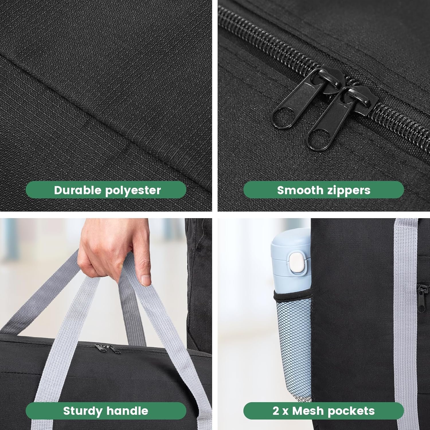 Foldable duffle bag & Lightweight: The packable duffle bag for travel is made of quality polyester material, weighing only 5.3 ounces, this duffel bag is lightweight and durable. Besides, the small travel bag can be folded up with easy steps to save your storage space when non-use
