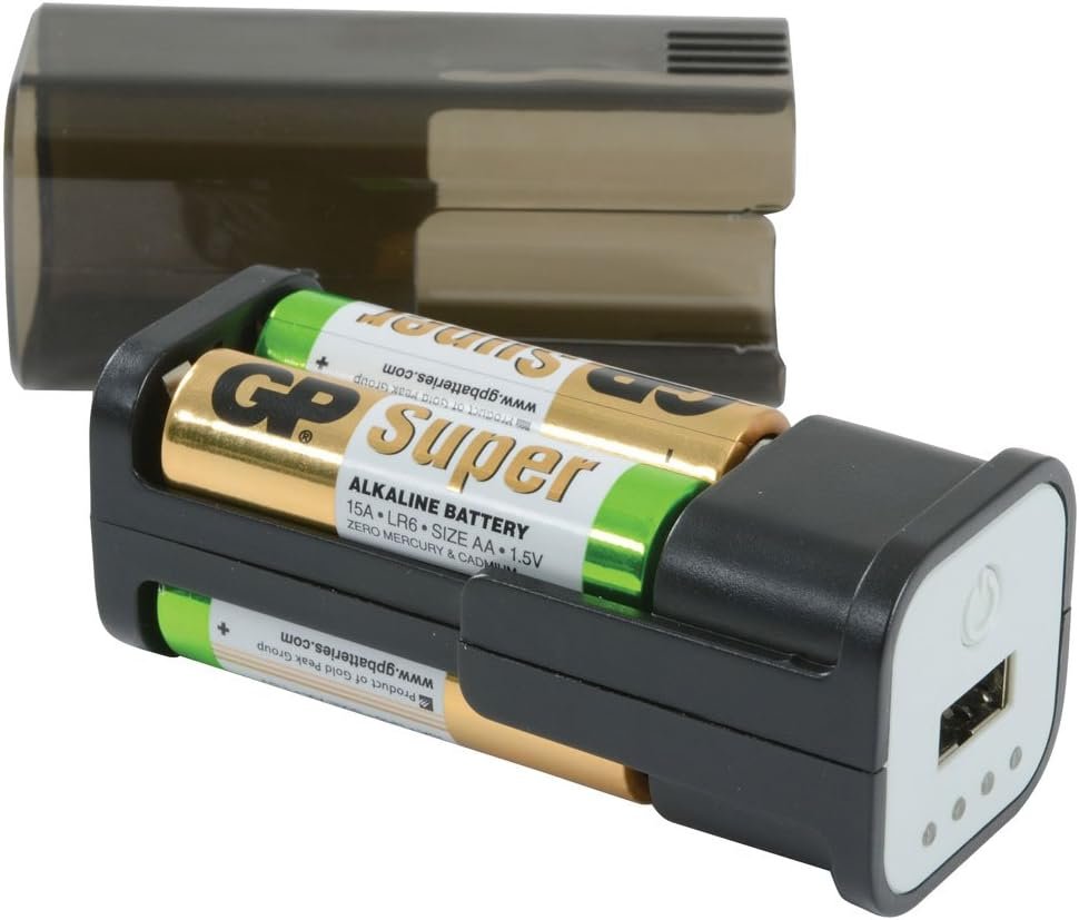 This compact, portable USB power bank allows devices to be charged from 4 AA batteries while on the move. Ideal for smartphones, tablet computers and many other devices.