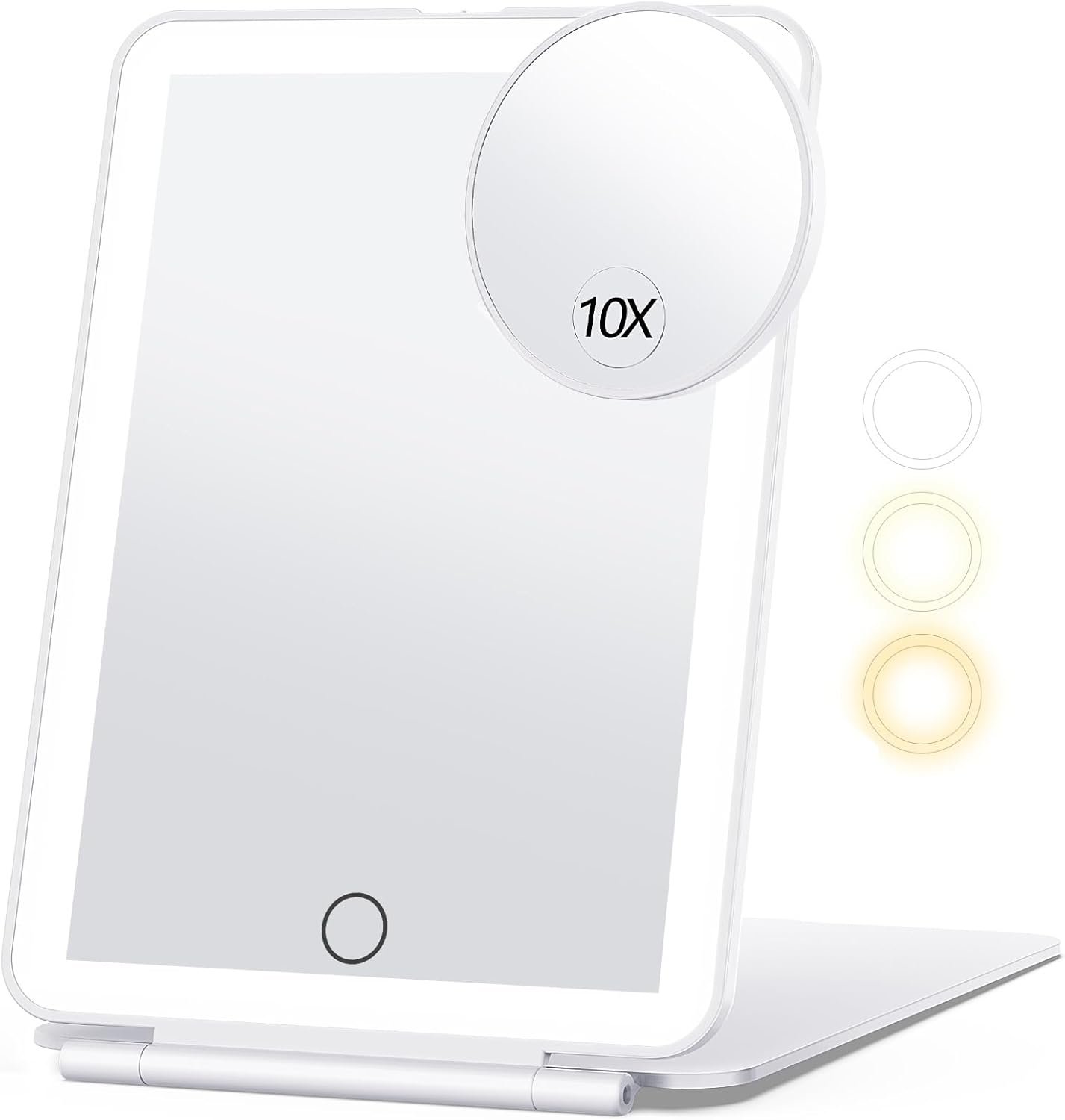 Extra round 10X magnifying mirror; package included a round 10x magnifying mirror, which let you see every detail clearly, ensuring every detail of your makeup is perfect, suitable for eyeliner, eyebrows, lipstick; 75-90 degree free rotation angle, you can easily find the vanity mirror angle you want