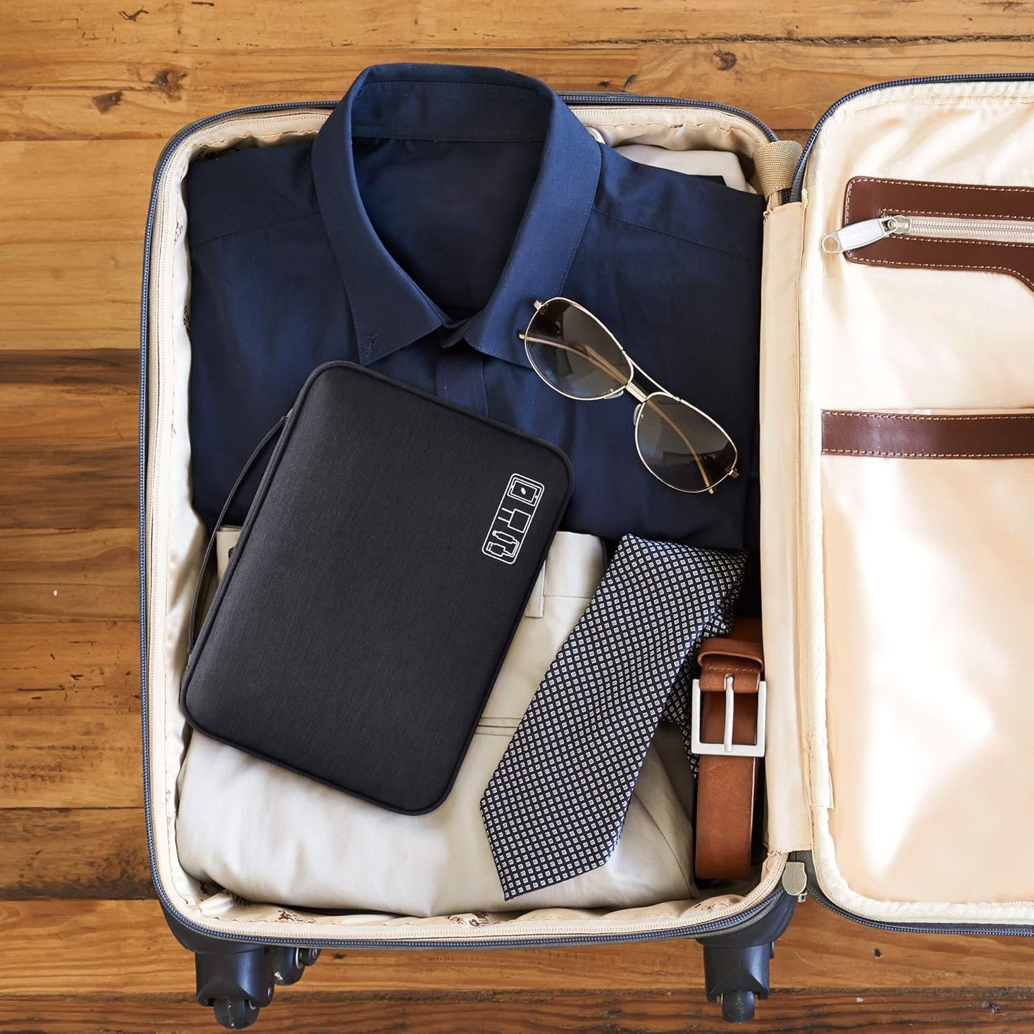 Multi-Pocket Design: Contains various pockets to organize and store different types of electronic accessories and other travel essentials.