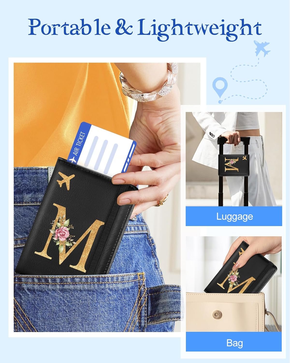 Unique Initial Design- Distinctive passport holder have unique letter designs-each with character and elegance,ensuring your passport doesn’t just blend in.Not only does it personalize your travel gear,it also helps to quickly identify you.