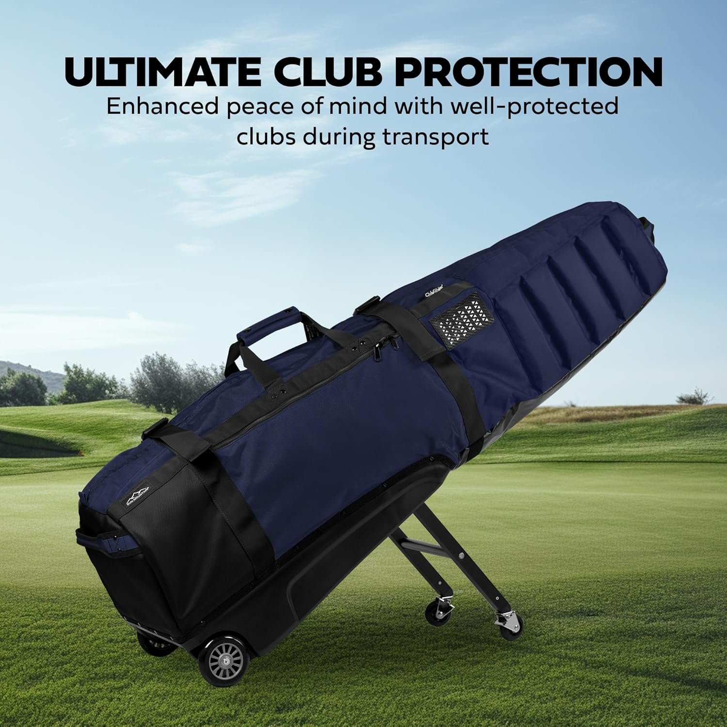Sun Mountain ClubGlider Meridian – Prestigious Golf Bag with Wheels for Ultimate Convenience – Heavy Duty Golf Travel Bag with Dense Foam Padding for Protection and Spacious Storage – Navy Black