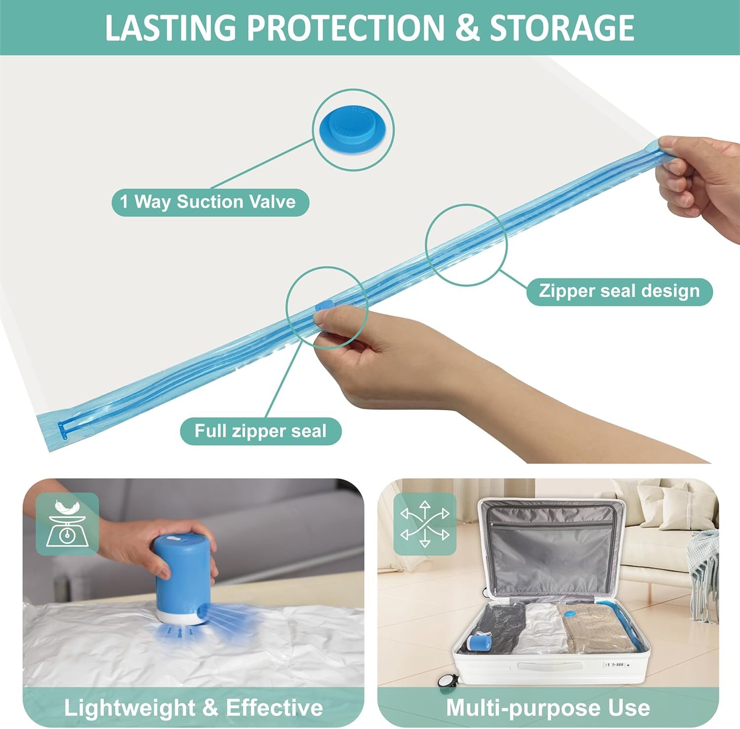 Our vacuum seal bags for clothing with electric pump achieve rapid vacuum with less manual effort compared to traditional pumps. They are lightweight and compact for easy portability.