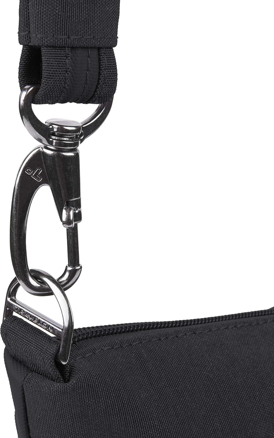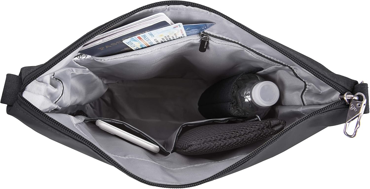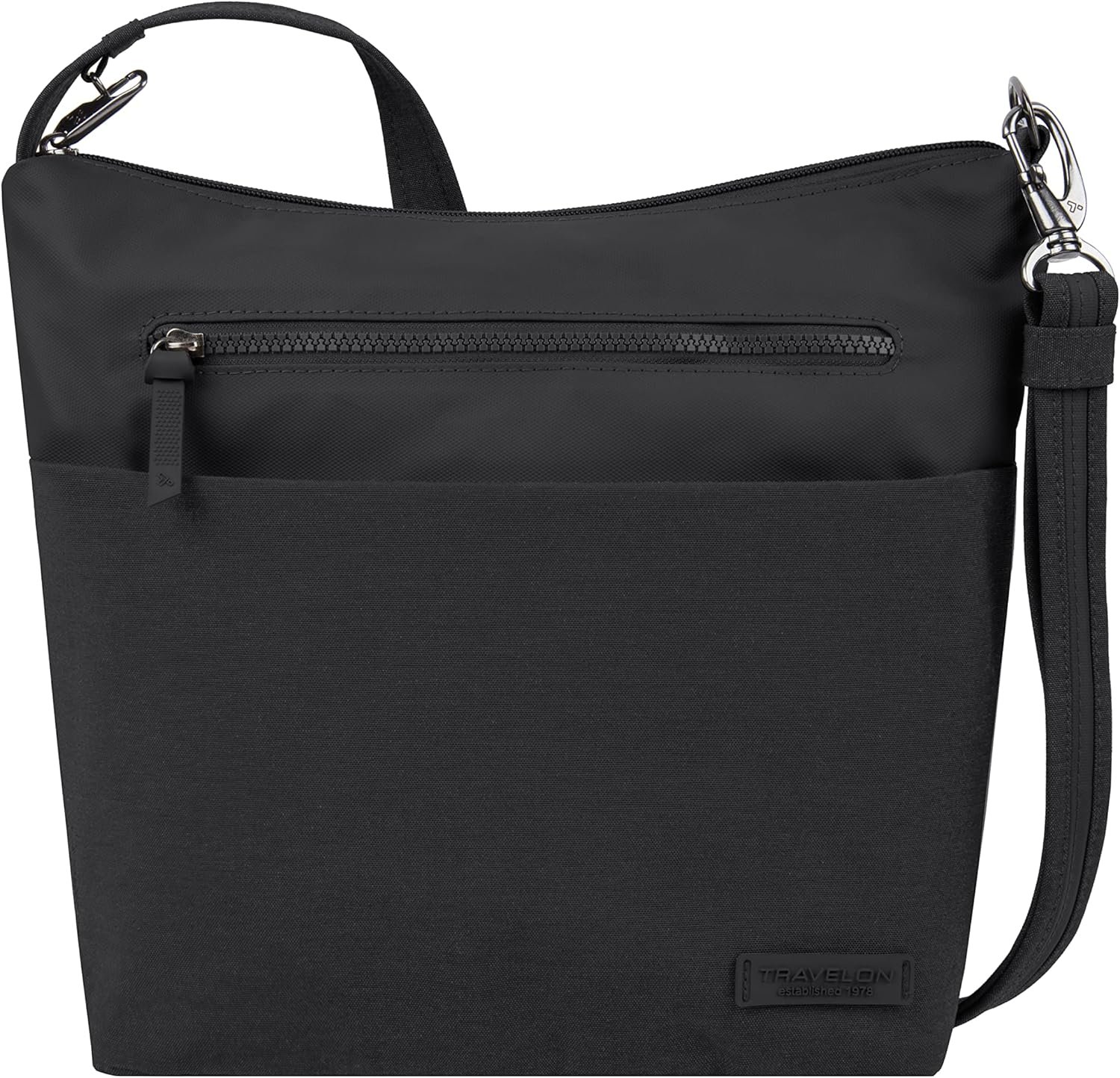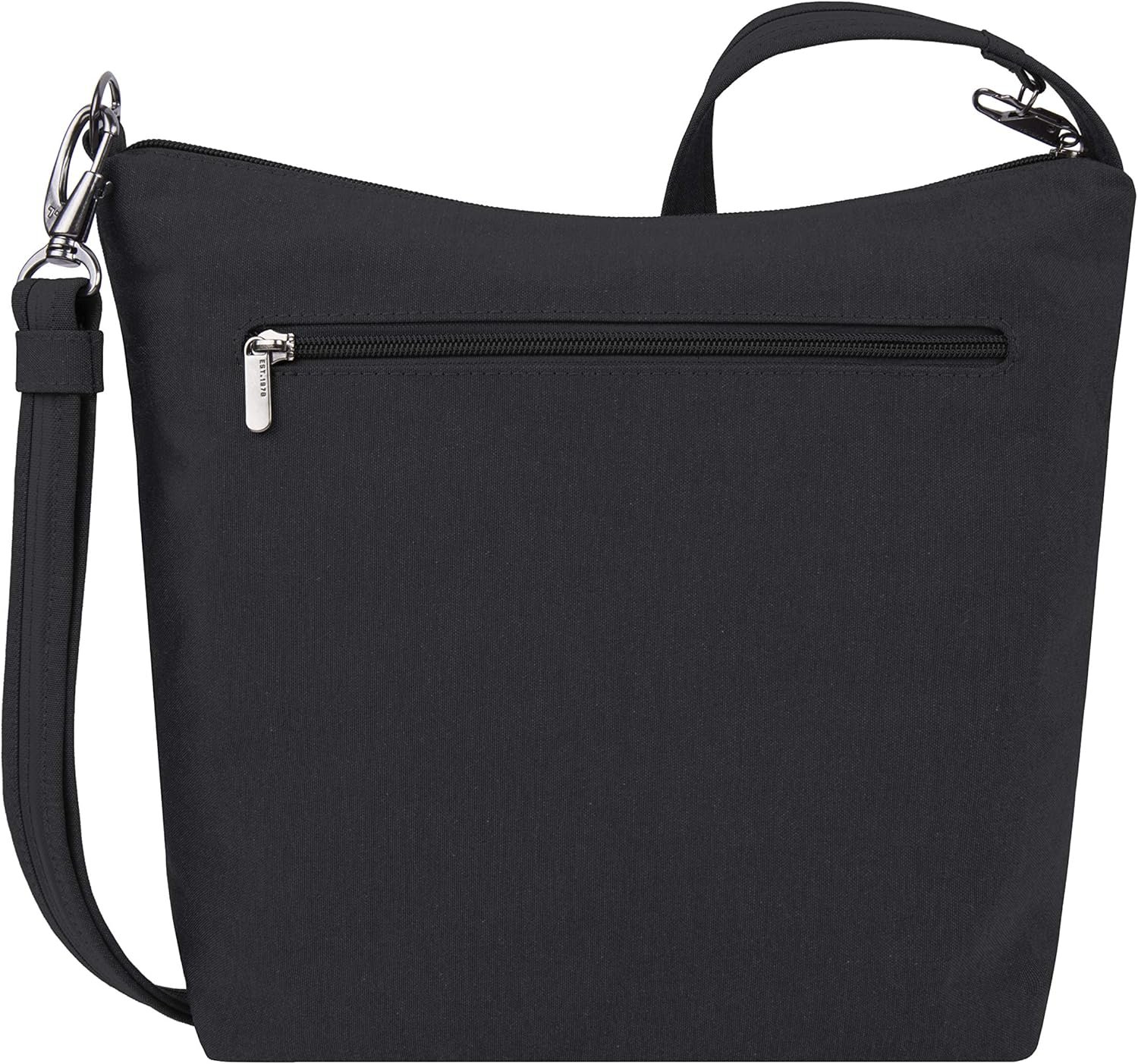 The METRO crossbody bag is perfectly sized and designed with the millennial women in mind. The main locking zipper compartment features 2 drop pockets, a tethered key clip, an interior sleeve to hold a water bottle or umbrella in place and a zippered wall RFID protected pocket to store your wallet, credit/debit Cards, Id, passport or any other item that stores your personal information and you are protected from high-tech electronic readers trying to steal your personal information. A rear zippered pocket is ideal for frequently needed items. The front has two zippered compartment; one locks for additional security. It includes a removable rfid air-mesh pouch that is ideal for debit/credit cards, gift cards, Id, currency and more. Travel confidently and securely with anti-theft features like locking zippers, slash-resistant body panels and a slash-resistant, adjustable shoulder strap that can be attached to a stationary objet to prevent a grab-n-go. Made from polyester material and accented in raw Gun-metal hardware. The metro crossbody has a contemporary take on a classic style.